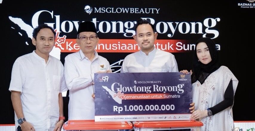 Jakarta, 5 Desember 2025 — Banjir di Sumatra telah mengetuk hati banyak pihak, tak terkecuali perusahaan induk J99 Corp. besutan pasangan pengusaha Gilang Widya Pramana dan Shandy Purnamasari. J99 Corp. melaksanakan kegiatan kemanusiaan bertajuk “Glowtong Royong” Aksi Kemanusiaan untuk Sumatra, sebuah gerakan yang mengajak seluruh karyawan di semua unit bisnisnya, serta para mitra khususnya seller dan reseller MS GLOW untuk bahu-membahu membantu masyarakat yang terdampak bencana di wilayah Sumatra. Keluarga besar J99 Corp berhasil mengumpulkan total donasi sebesar Rp 1 miliar, terdiri dari donasi tunai dan barang, yang akan disalurkan melalui kolaborasi bersama Menggandeng Badan Amil Zakat Nasional (BAZNAS) BAZIS DKI Jakarta. Dari jumlah tersebut, Rp 400 juta akan ditransfer langsung melalui rekening perusahaan ke BAZNAS, sementara donasi barang senilai Rp 600 juta diserahkan kepada BAZNAS untuk kemudian disalurkan kepada yang terdampak.